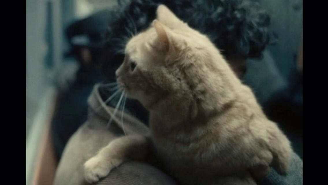 By that rationale you could also read the cat as some kind of mystical and metaphorical extension of his own id. Maybe it is a spectral creature sent to provide guidance and solace. That last one would certainly explain how he manages to carry it around for so long. Anyone who has ever had a cat as a pet will be amused by the idea of carrying one on the subway, in one arm, while holding a guitar case in the other.