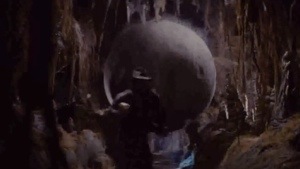 Of course this one is here. A fedora wearing adventurer is navigating his way through a booby trapped tunnel. He has already escaped the treacherous chasm and the lethal darts so what is next? Why it’s a gigantic, perfectly spherical, rolling boulder for him to out run. It is simultaneously completely stupid and totally totally brilliant.