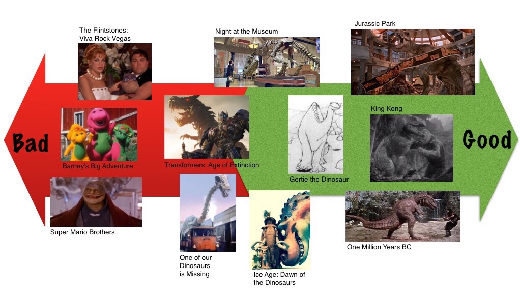 The Good Dinosaurs to the Bad Dinosaurs November 20, 2015November 20, 2015 • notlefthandedfilmguy With Pixar’s The Good Dinosaur coming out next week, check out this chart showing when cinema has done dinosaurs well and when it hasn’t: Share this: Click to share on Facebook (Opens in new window) Facebook Click to share on X (Opens in new window) X Click to email a link to a friend (Opens in new window) Email Click to share on Tumblr (Opens in new window) Tumblr Click to share on Pinterest (Opens in new window) Pinterest More Click to share on WhatsApp (Opens in new window) WhatsApp Like Loading...