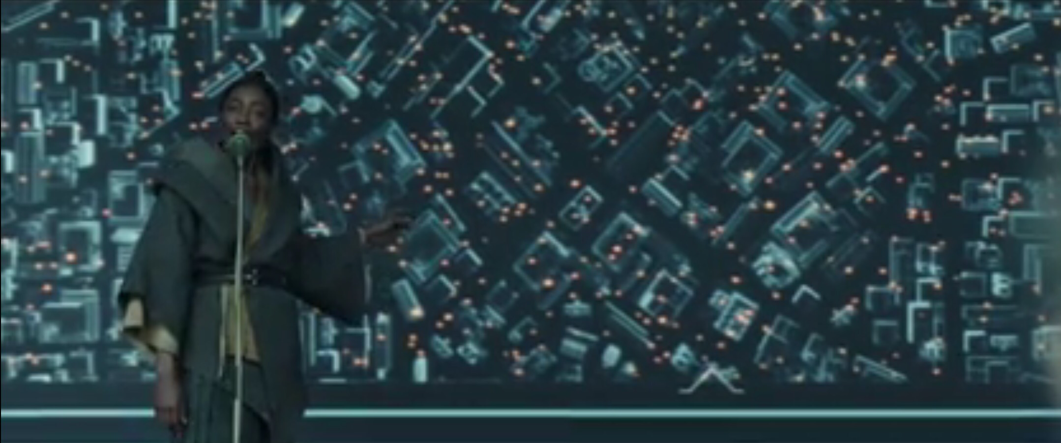 (Commander Paylor stands in front of a giant map of the capital, briefing the rebel troops on their forthcoming incursion.)