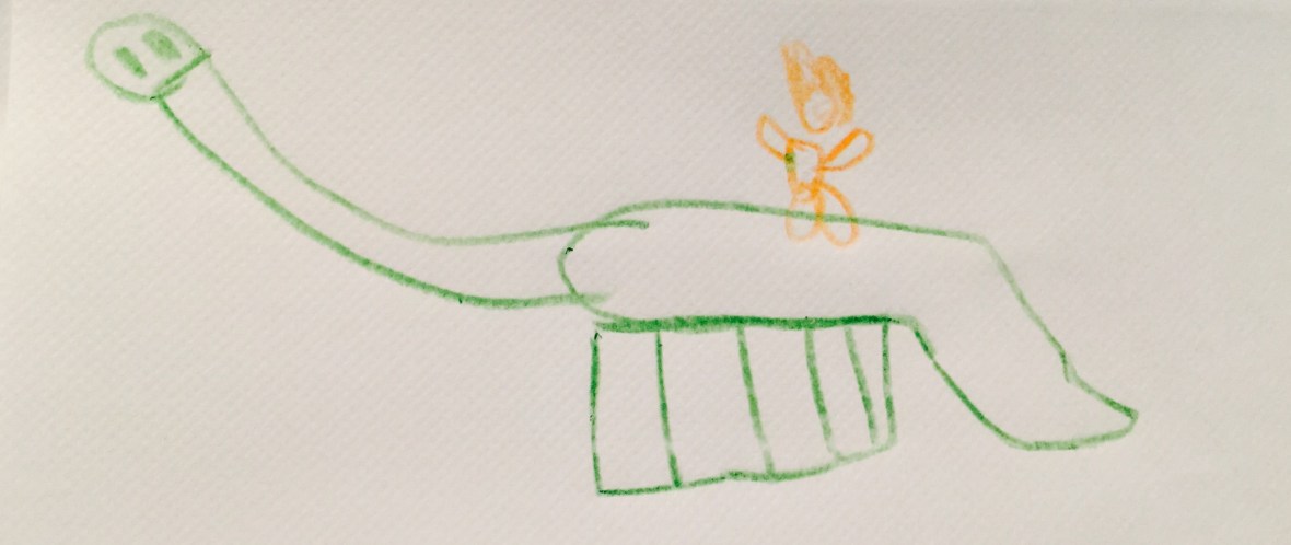 My favourite bit is when he found his family. I liked the bit when he found the little boy who pretended to be a dog as well. The boy protected him. I’m wondering if the dinosaur and the boy will ever meet up again.