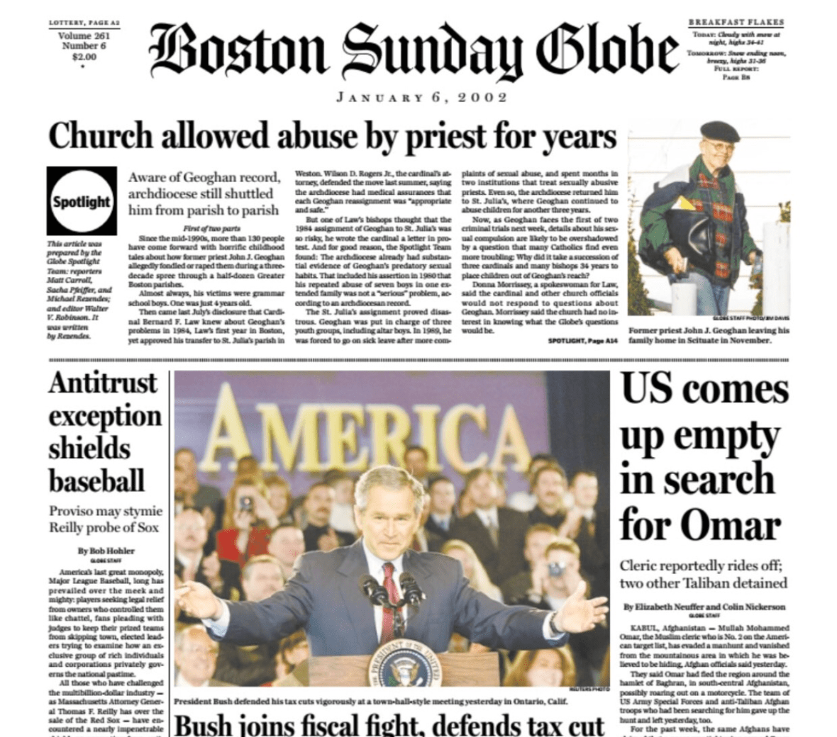 According to this telling when the Spotlight investigative journalism team at the Boston Globe were handed the story of this hideous Catholic cover up there was no moment of shock, disbelief or righteous motivation. It was only as they looked in to it did they begin to realise quite how big the story was. Of course no one on screen is thrilled at getting this scoop because big means widespread and widespread means dozens and dozens (and dozens and dozens) of young victims.