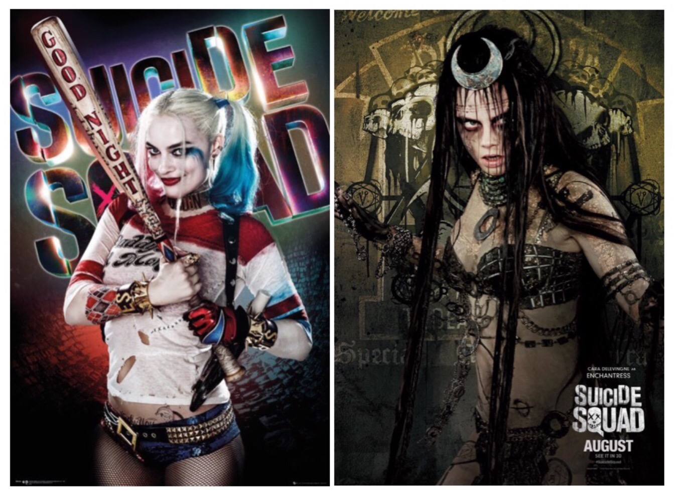 There’s more. The sexual politics are pretty offensive in the sense that the two female leads are totally objectified. Margot Robbie’s Harley Quinn is probably the star of the movie as much as she was the star of the publicity. The character originated in the Batman Animated Series in 1992 but was picked up by the comics within a year where she was inevitably overly sexualised, especially when she became a part of the series this film is based on. Back on the screen but now live action she is toned down a little but remains a teenage boy’s fantasy. She’s wearing a shirt, most of the time, but it’s all pigtails up top and tiny pants down below. This latter costume detail is most obvious when she is shot from behind which she is, regularly. The camera lingers a little less on Cara Delevingne’s bonkers Enchantress but she is wearing even less. Apparently she is an ancient and mighty witch commanding powers beyond comprehension so of course she’d be in chains and a dusty bikini. Harley Quinn is also essentially the damaged victim of abuse which does not sit well.