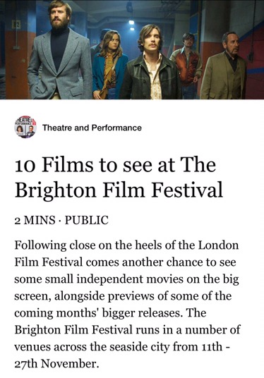 The Brighton Film Festival November 7, 2016 • notlefthandedfilmguy Follow Theatre & Performance Magazine on Facebook https://www.facebook.com/notes/theatre-and-performance/10-films-to-see-at-the-brighton-film-festival/1266875596688487 Share this: Click to share on Facebook (Opens in new window) Facebook Click to share on X (Opens in new window) X Click to email a link to a friend (Opens in new window) Email Click to share on Tumblr (Opens in new window) Tumblr Click to share on Pinterest (Opens in new window) Pinterest More Click to share on WhatsApp (Opens in new window) WhatsApp Like Loading...