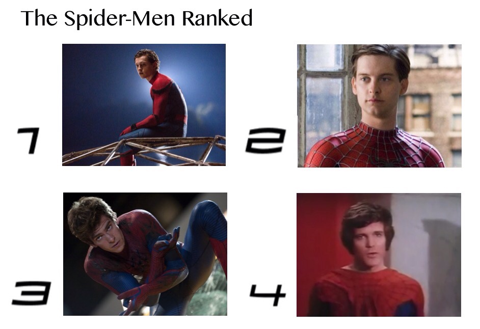 The Spider-Man Films Ranked July 7, 2017 • notlefthandedfilmguy Not including Captain America: Civil War Read the Spider-Man: Homecoming review here Share this: Share on Facebook (Opens in new window) Facebook Share on X (Opens in new window) X Email a link to a friend (Opens in new window) Email Share on Tumblr (Opens in new window) Tumblr Share on Pinterest (Opens in new window) Pinterest More Share on WhatsApp (Opens in new window) WhatsApp Like Loading...