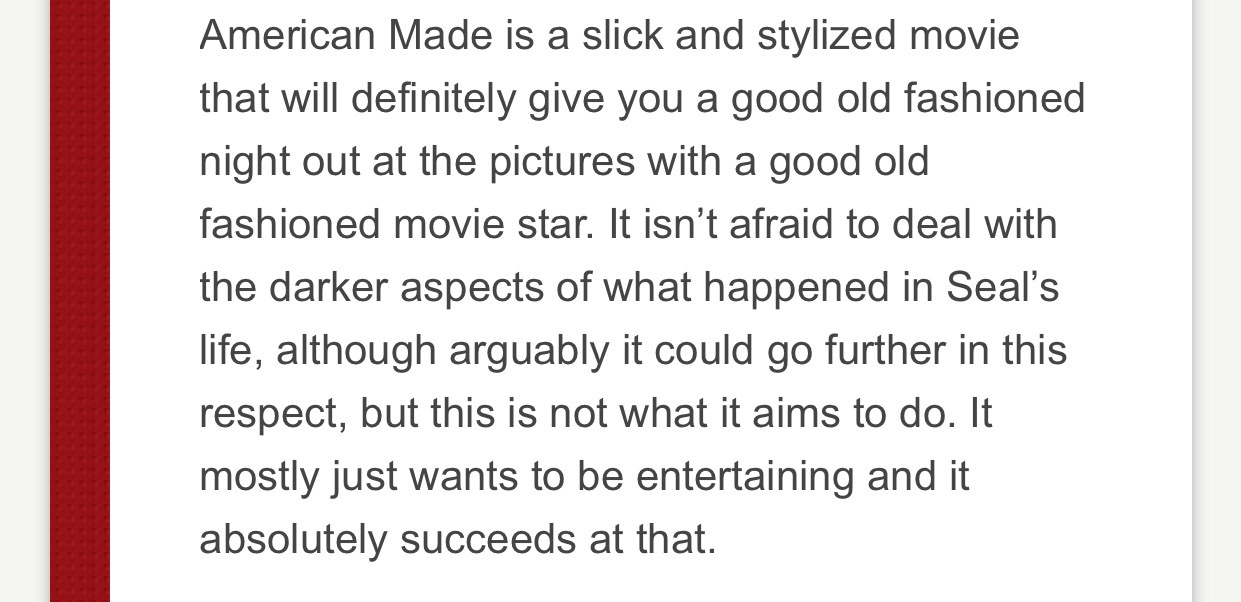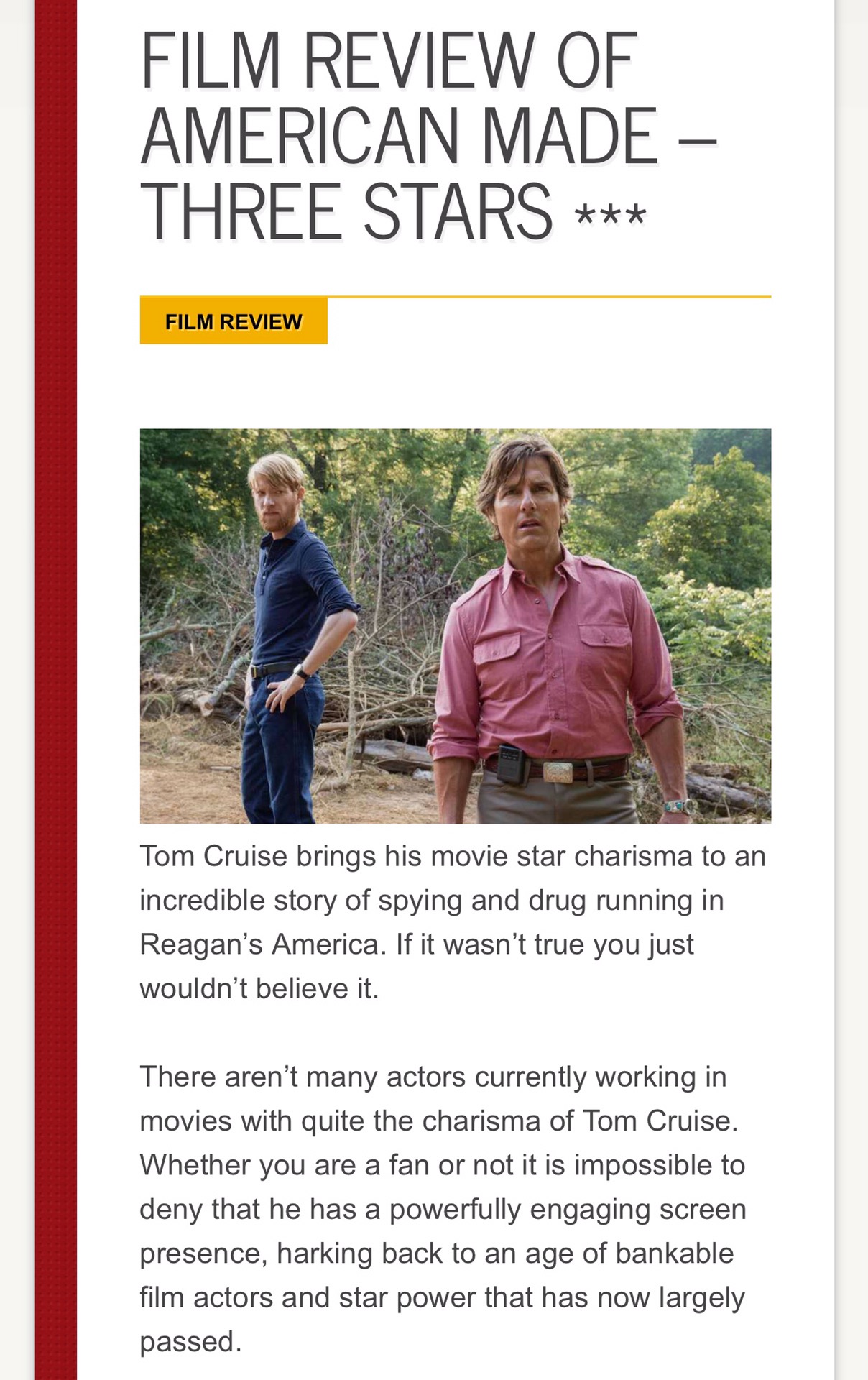 American Made August 24, 2017 • notlefthandedfilmguy From Theatre & Performance Magazine http://www.theatreperform.com/ Share this: Click to share on Facebook (Opens in new window) Facebook Click to share on X (Opens in new window) X Click to email a link to a friend (Opens in new window) Email Click to share on Tumblr (Opens in new window) Tumblr Click to share on Pinterest (Opens in new window) Pinterest More Click to share on WhatsApp (Opens in new window) WhatsApp Like Loading...