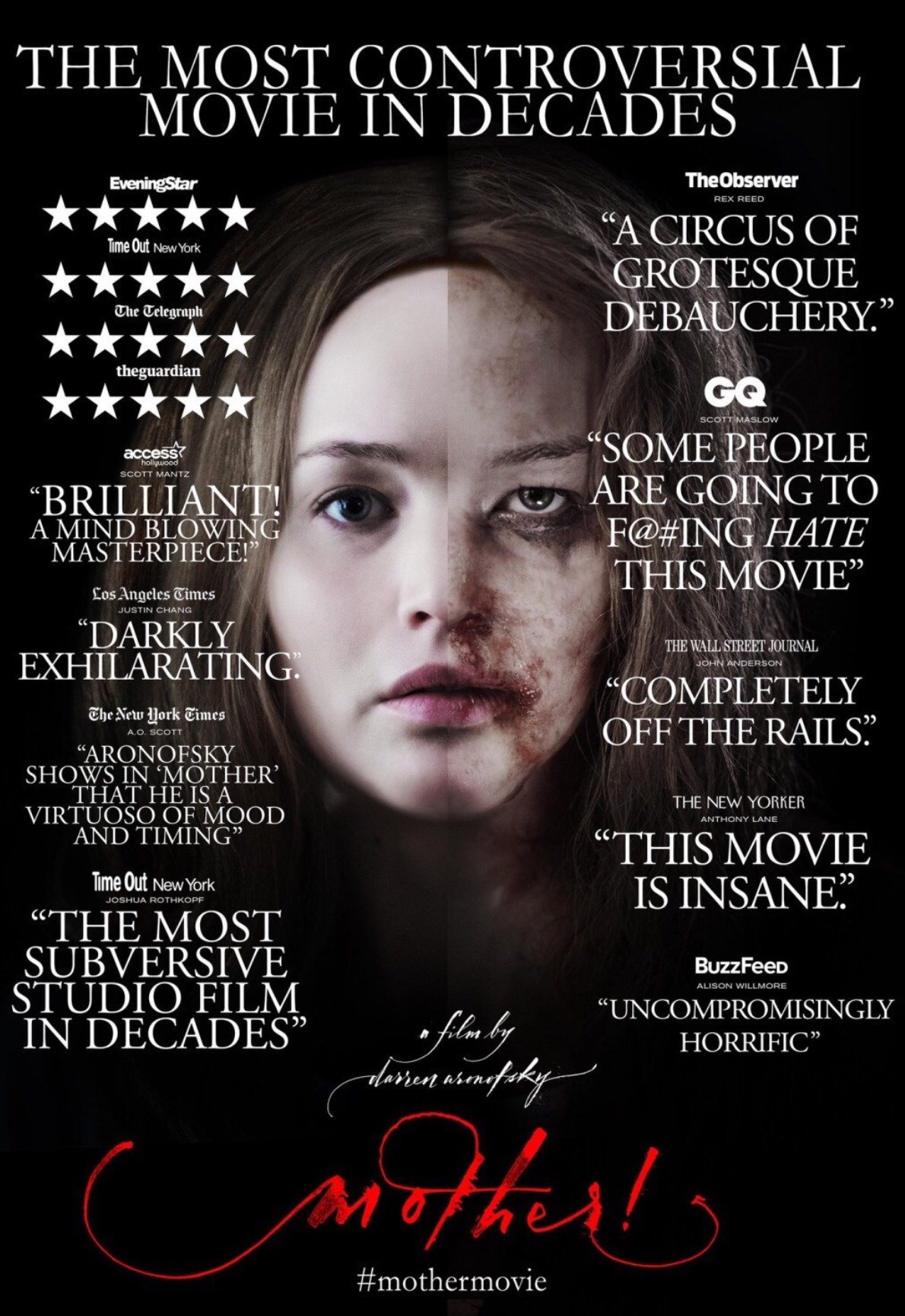 I sometimes teach academic writing as part of my job and one of the things that has always bugged me in the students work is when they put two exclamation marks after a word. I mean seriously, surely nothing needs exclaiming that much. I’m adjusting my position on this now though because in the case of Darren Aronofsky’s new movie Mother! one exclamation mark is definitely not enough. This film is so unrelenting, so unafraid and so unapologetic that it makes Eraserhead look like Eastenders.