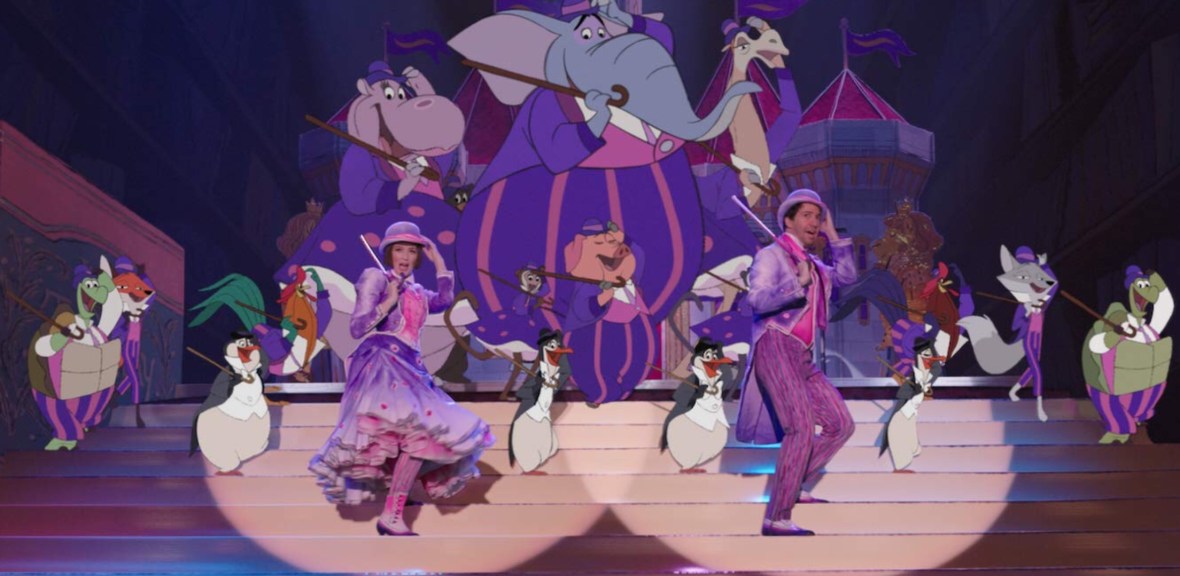 The highlight of Mary Poppins Returns though is the song A Cover is Not the Book and it might be the best number from either movie. It sees the two leads sashay, shimmy, gavotte, twirl and tap alongside a chorus of cartoon creatures including but certainly not limited to some barnyard animals and a few bow tied penguins. It is magnificent. The music and lyrics are an old school joy as well, beautifully celebrating music hall traditions with a series of verses encouraging this cinema audience to train their curiosity with good old fashioned books.