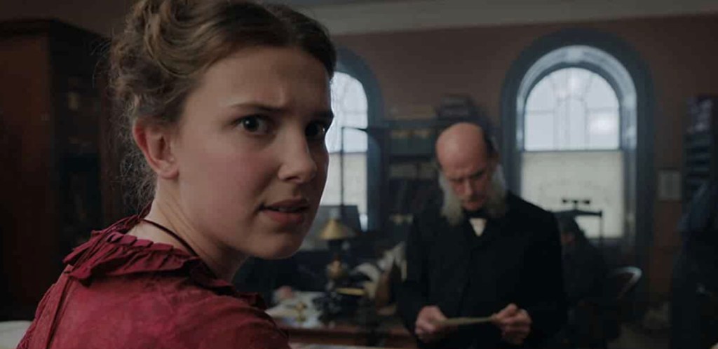 In running off this (incomplete) list I aim to make a point; cinema and television is not short of adaptations of Sherlock Holmes. This being the case, I am pleased to say that this new Netflix film does add something new to the mix. It is great to see a girl in this world; a world where the most significant female characters are the housekeeper and Irene Adler whose appearance is so anomalous that she is actually referred to as ‘the woman’. Philip Pullman did something similar with his excellent Sally Lockhart novels and the brilliant Billy Piper TV movies that followed them but they were merely Holmsian rather than actually being about the great detective himself. There are treats in seeing this famous character bouncing off a constantly underestimated but comparably smart little sister. Henry Cavill plays Holmes here and he’s actually very good, giving the man a warm edge to the smugness. (This is surprisingly good casting as Cavill plays smug a lot, in Mission Impossible, Stardust, The Man from Uncle and even a little in The Witcher and his Superman films. It’s kind of becoming his thing, better give him Bond after all.) This isn’t Sherlock’s show though. The real star, and one of the key reasons why this movie works so well, is Millie Bobby Brown.