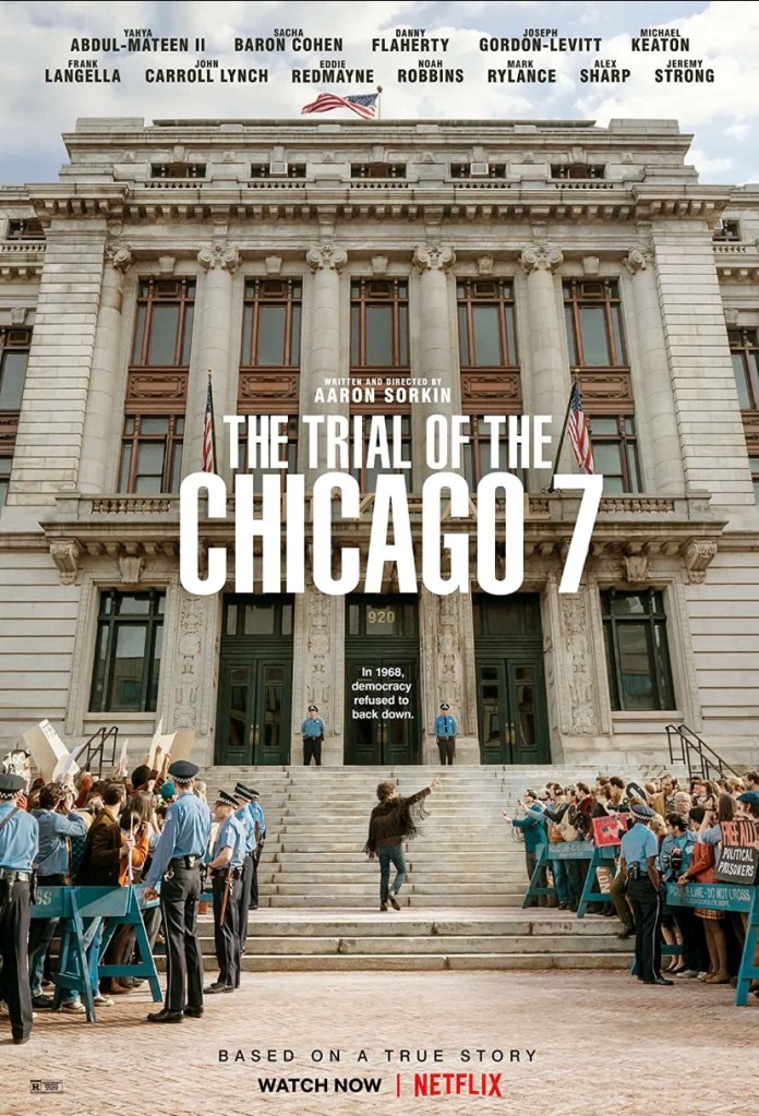 Despite my opening, The Trial of the Chicago 7 is not as Sorkinesque as some of his other work. Most of the conversations happen round tables rather than up and down corridors for a start but there is no one central character, be it Molly Bloom, Mark Zuckerberg, Steve Jobs, Billy Beane, Charlie Wilson or Josiah Bartlett who is the most intelligent and principled person in the room. Instead his typical ensemble cast share equal billing this time and they are all superb. This is probably Eddie Redmayne’s best performance outside of The Theory of Everything, but there are also excellent turns from Joseph Gordon-Levitt, Jeremy Strong, Alex Sharp, John Carroll Lynch and Yahya Abdul Mateen II, the latter of who is building on superb work in Watchmen and further away from his work in Aquaman, as well as reliables Mark Rylance and Michael Keaton. The MVPs though are probably Frank Legella as the infuriating Judge Julius Hoffman and back on the other side of the bench, Sacha Baron Cohen as Abbie Hoffman (no relation but still the prompt for a great line that was apparently said in real life). This is Baron Cohen’s highest profile straight part to date and while it is clearly him he is almost unrecognisable as Borat or Ali G.