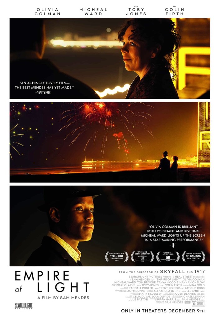 Director Sam Mendes’ whole film career has been a mix of big action and high drama with some of his projects featuring one of these (Spectre, Revolutionary Road, Away We Go, American Beauty) and others blending both (Skyfall, Jarhead, Road to Perdition, 1917). This one is definitely the former with the story centring around one person with the only explosions being of temperament. There are significant characters in protagonist Hilary’s orbit but they all feel more like filmic constructions than her, especially Michael Ward’s Stephen. Colin Firth appears in a supporting role that seems to be deliberately chosen to play with and fracture his usual debonair image and again, he is only there to be a part of someone else’s story.