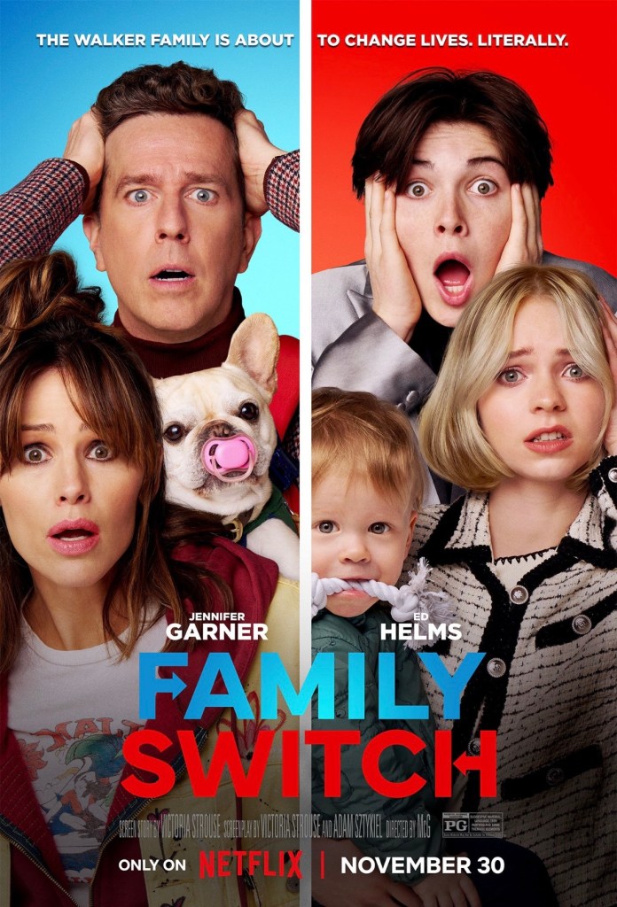 Family Switch basically sees a mother and a daughter, and a father and a son magically switch bodies just before each of them has an important life event coming up. Yep, it’s that movie again. It even includes lines like ‘if you could just spend one day being me, then you’d know’ and ‘Mum, you just want me to be you’ and wouldn’t you know it each character gains a new understanding of the life the person they swapped with is living. Oh, and there’s a family dance number AND a group song. The location where the incident happens is LA’s iconic Griffiths Observatory because that’s only been used in forty two other movies already and the script even references several previous films to famously use the same kind of conceit with name checks for Big, Freaky Friday and it’s own derivative Freaky, 13 Going on 30 and 17 Again (although oddly not Vice Versa).