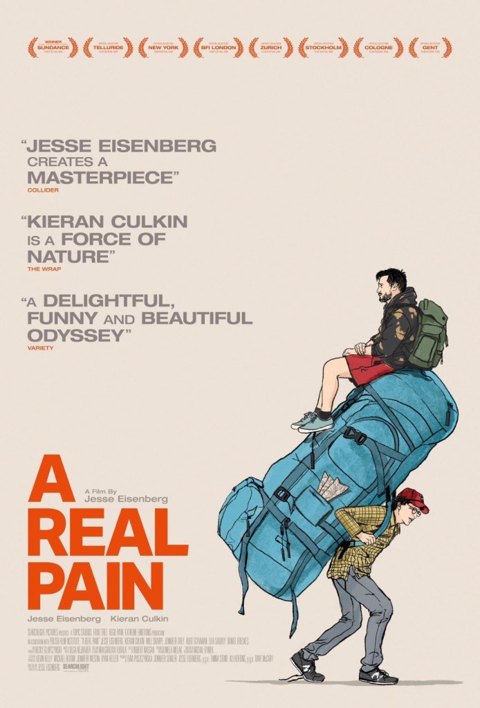 With this new film though I am a fan again. It’s not that he’s moved far away from his normal on screen persona, it’s just that here it feels honest and genuine and less of a schtick. A Real Pain is also written and directed by Jesse Eisenberg too so he is entirely the architect of his own come back. The story tells of two slightly estranged cousins who come back together for a tour around Poland in honour of their recently departed Grandmother and curiously Eisenberg was originally set to play the other one which might have been a departure. His performance as David is great though and is the heart of the movie. Opposite him is Kieran Culkin’s Benji who is the showier part (I’m sure he’ll get the Oscar) but if the film truly hangs around either of them it is probably Eisenberg’s character.